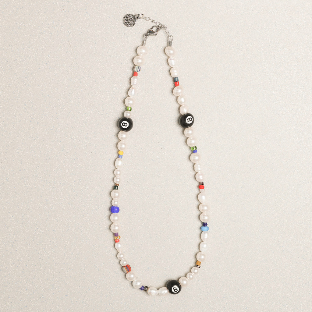 마치 어린시절 가지고 놀던 장난감처럼, 진주와 에잇볼이 만나 자칫 무거울 수 있는 진주의 분위기가 키치함으로 변주된 제품 입니다.
