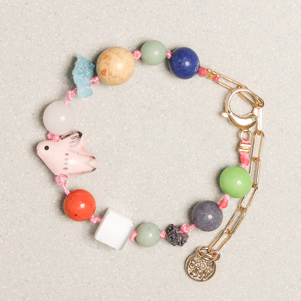 평화의 염원을 담은 비둘기와 다양한 크기와 소재의 원석들이 조화를 이루어 만들어졌습니다.