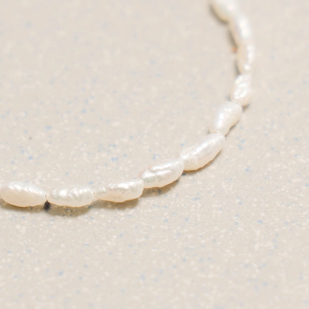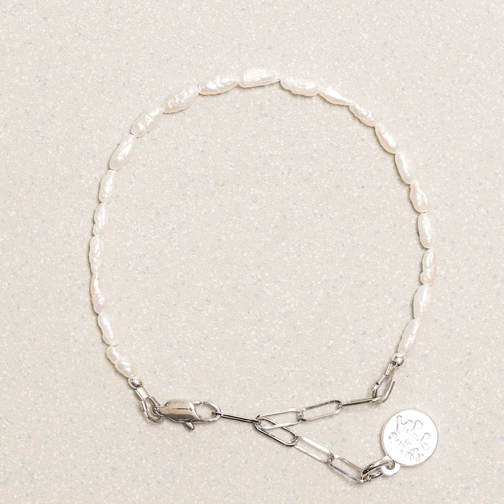 2mm 내외 작은 쌀알 모양의 진주로 만들어진 팔찌.