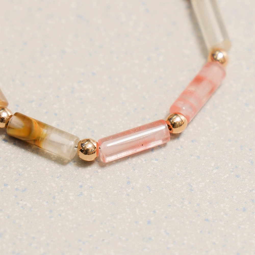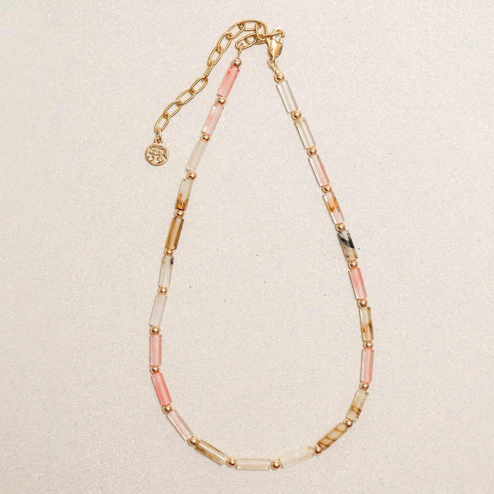 원석으로 제작된 실린더 비즈와 은색의 볼을 조합하여 제작된 상품입니다.