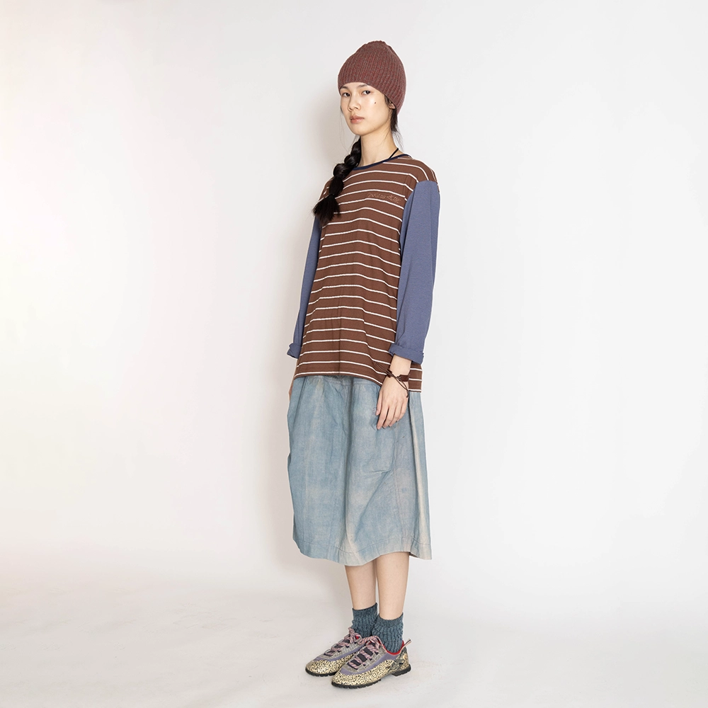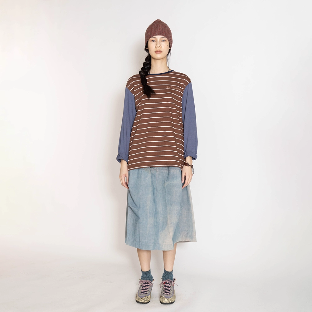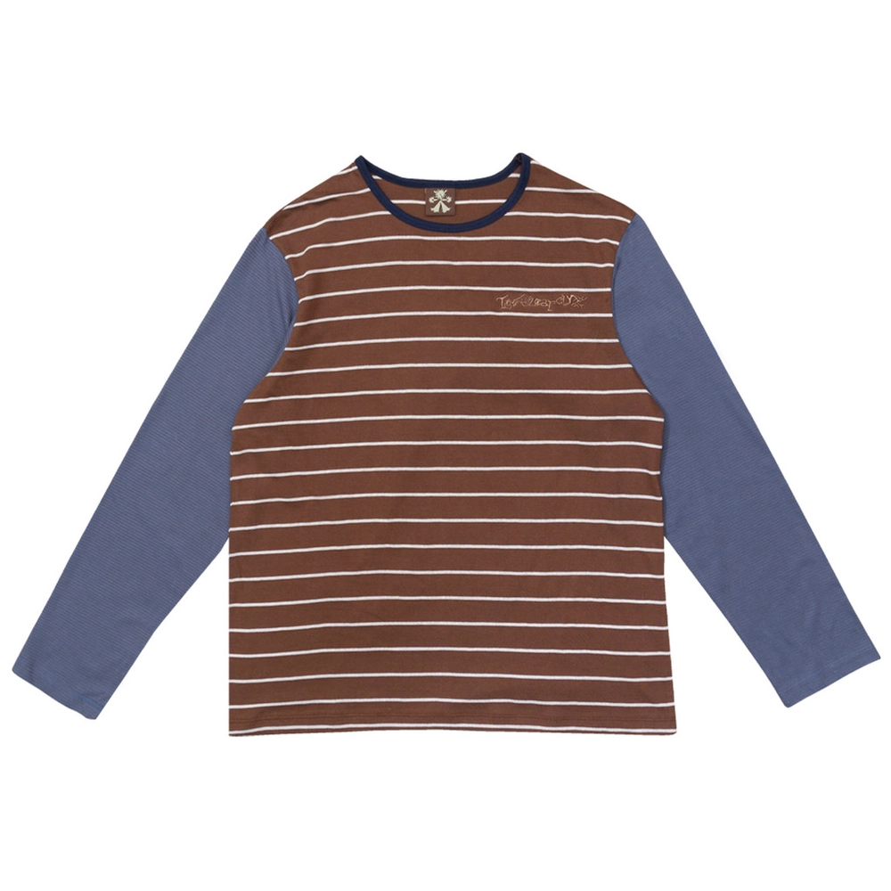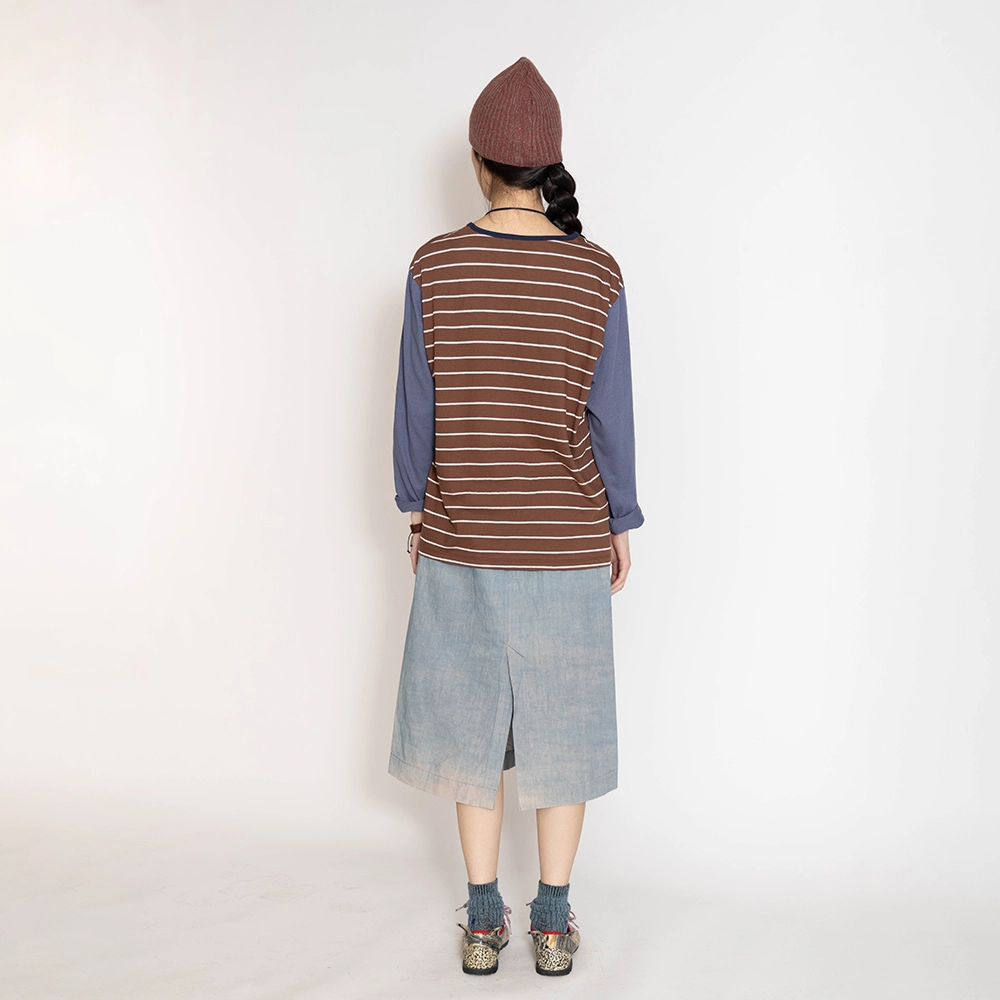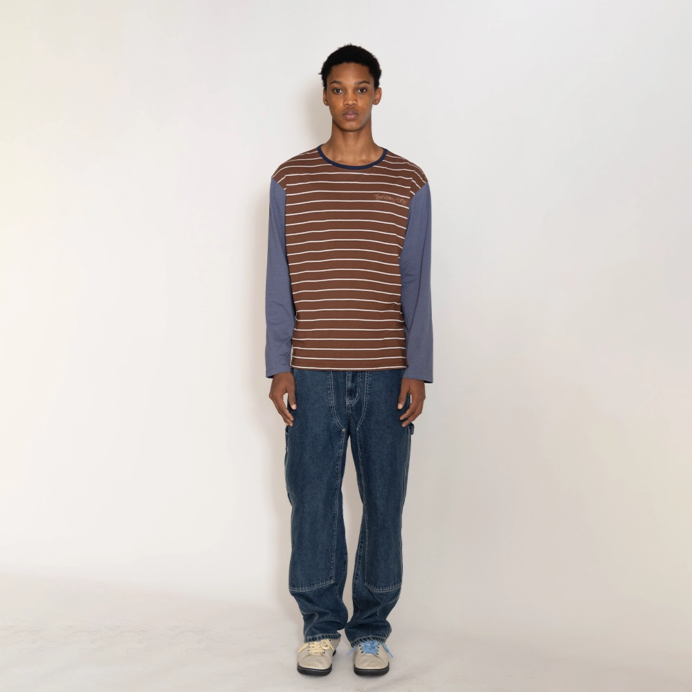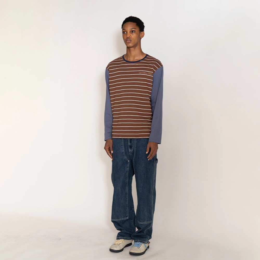 오프셋 스트라이프 티셔츠 코코아