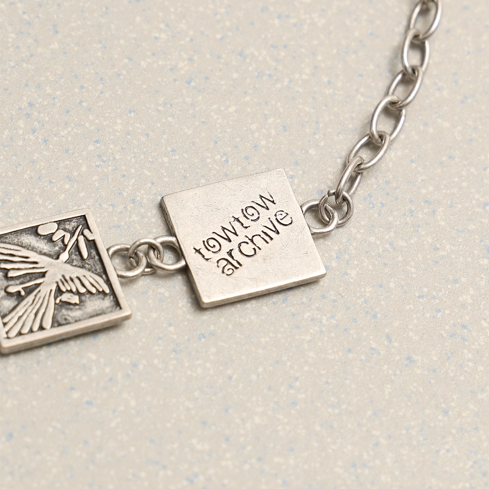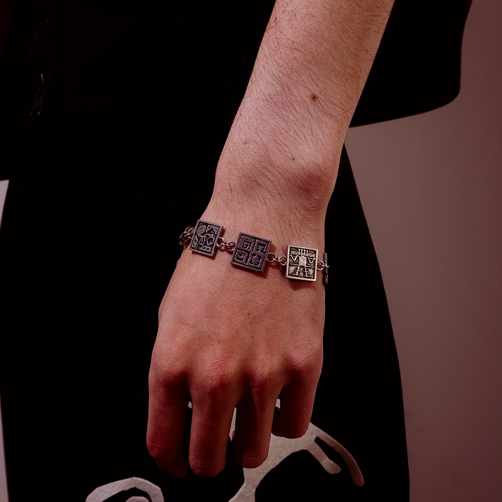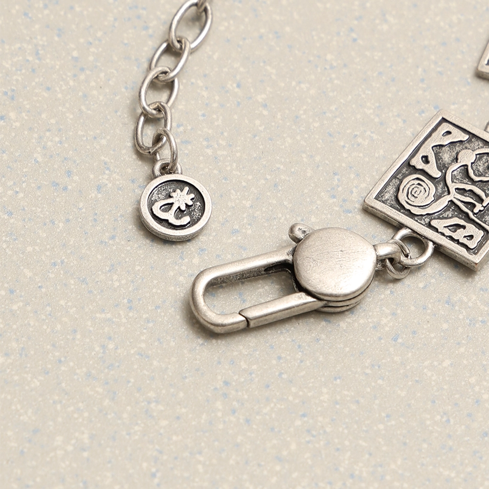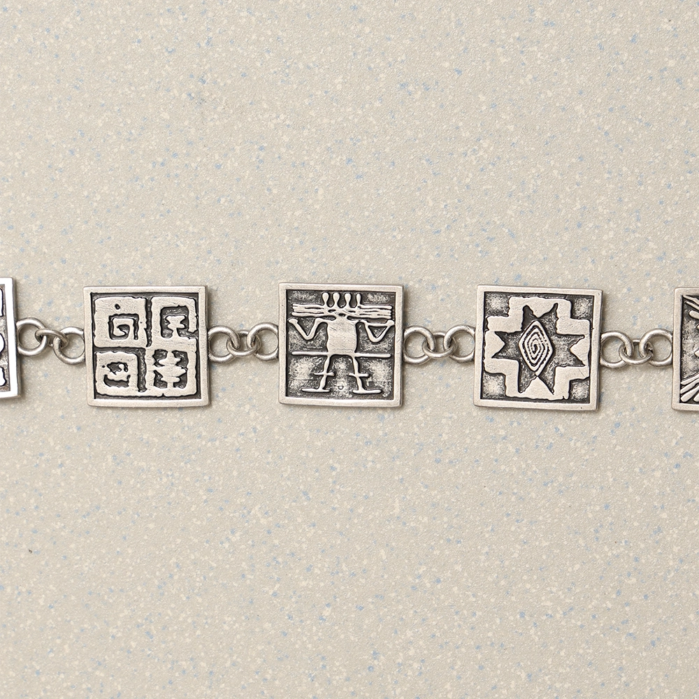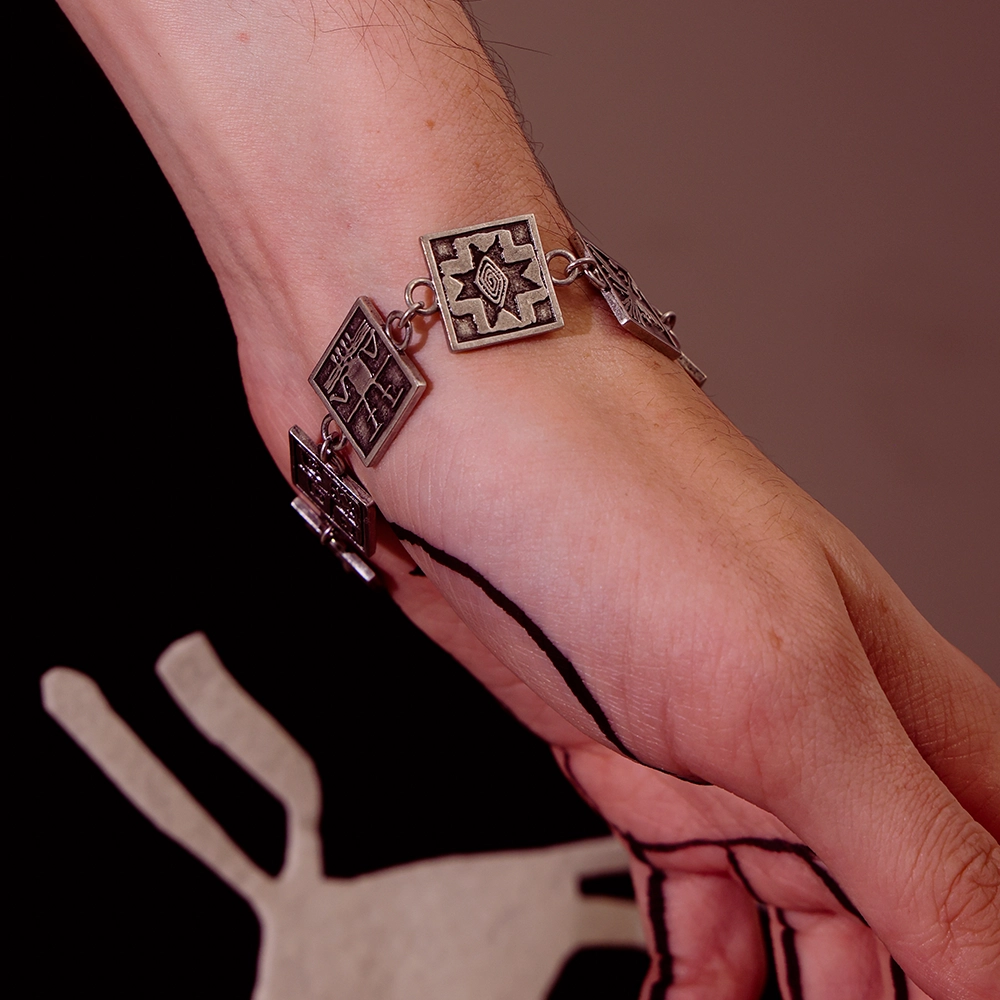 사각 타일 형태의 체인 링크에 나스카 패턴에서 착안한 스탬핑 문양을 더한 팔찌입니다.