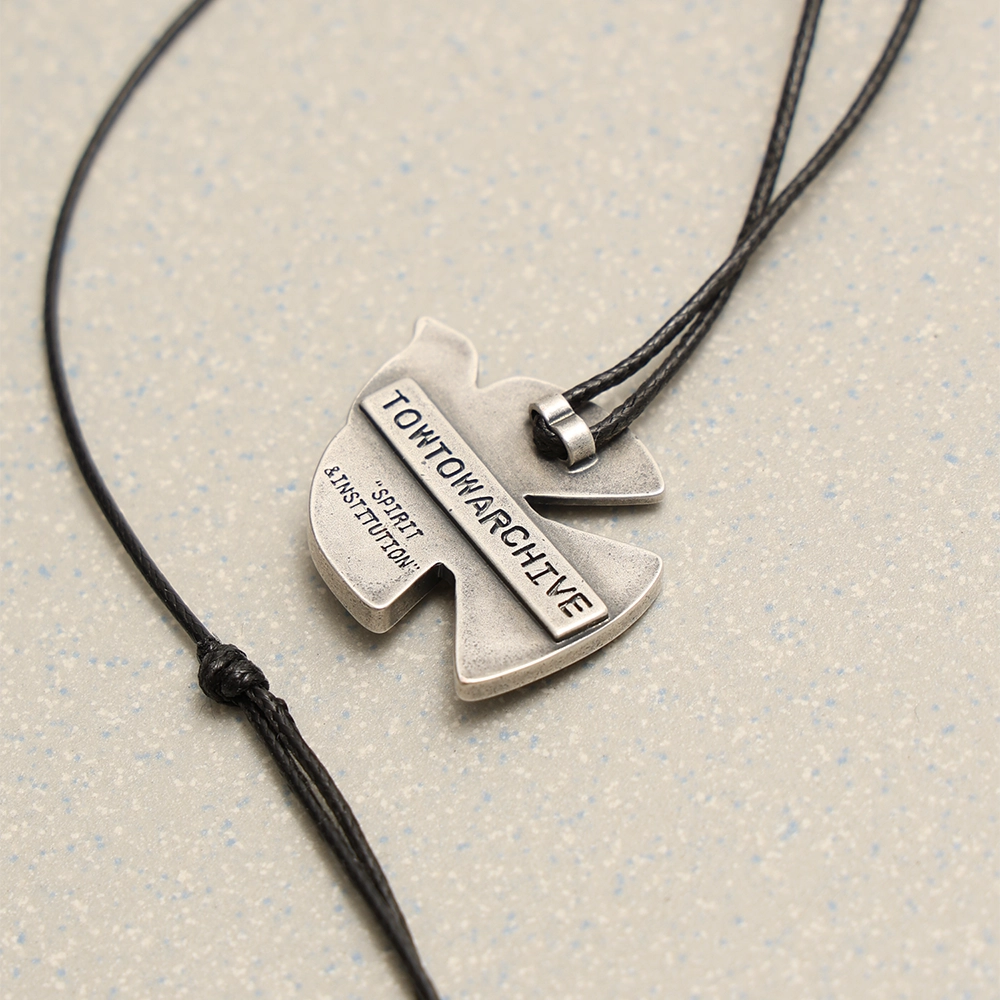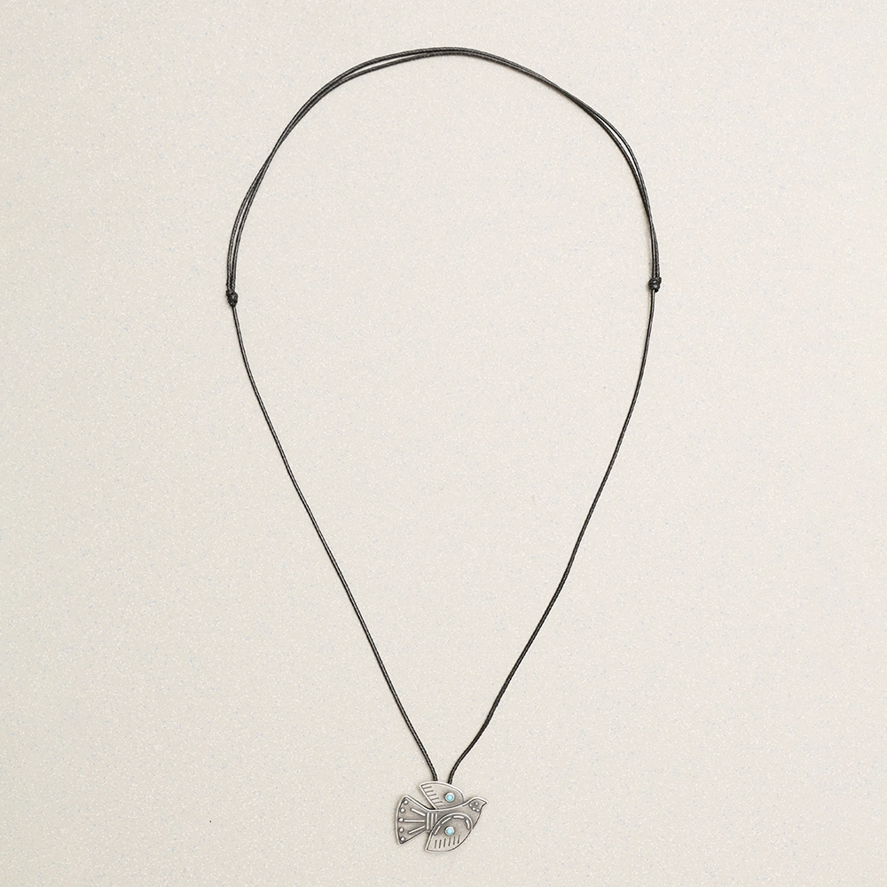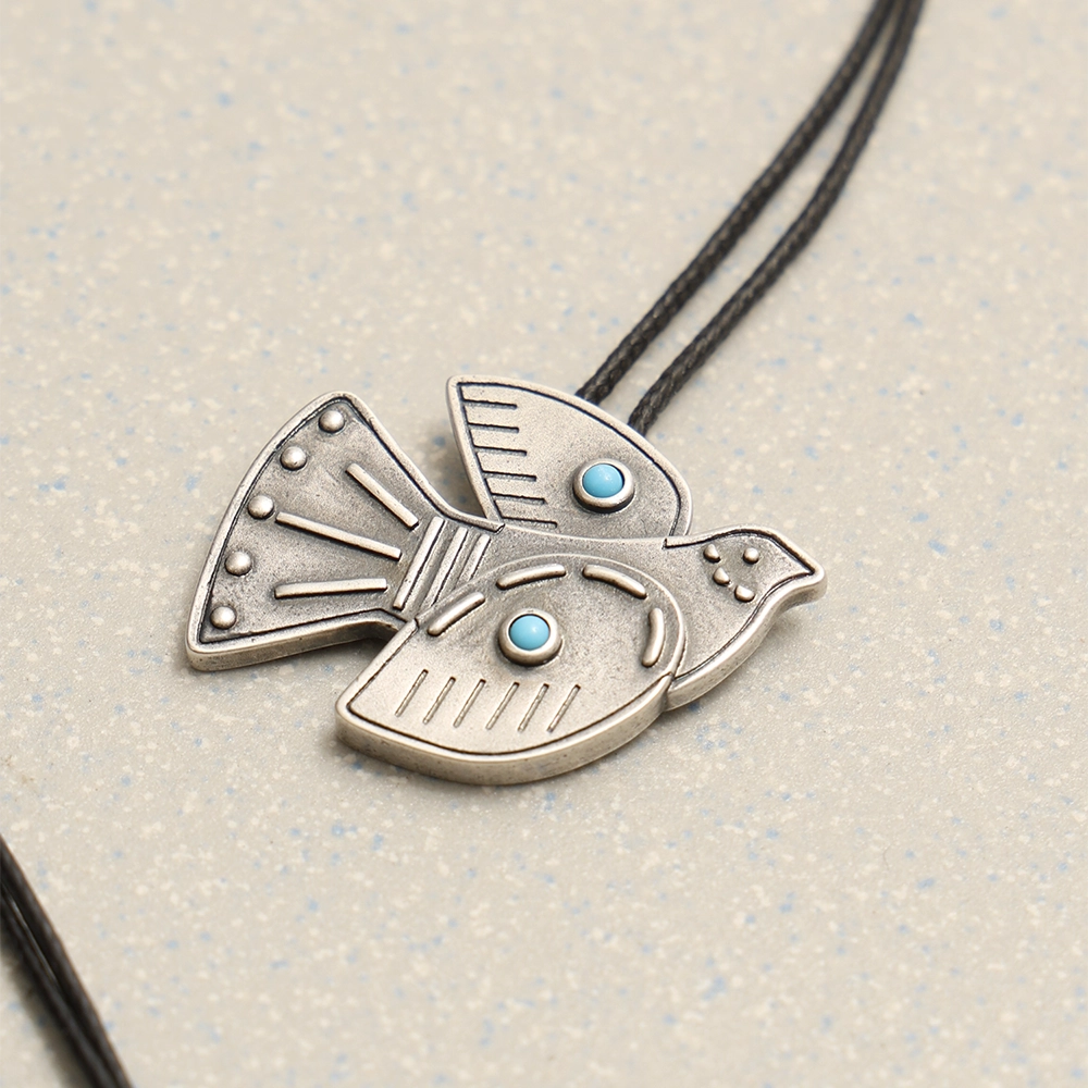 비둘기 형태의 평면 펜던트를 중심으로 구성한 피젼 타이 목걸이입니다.