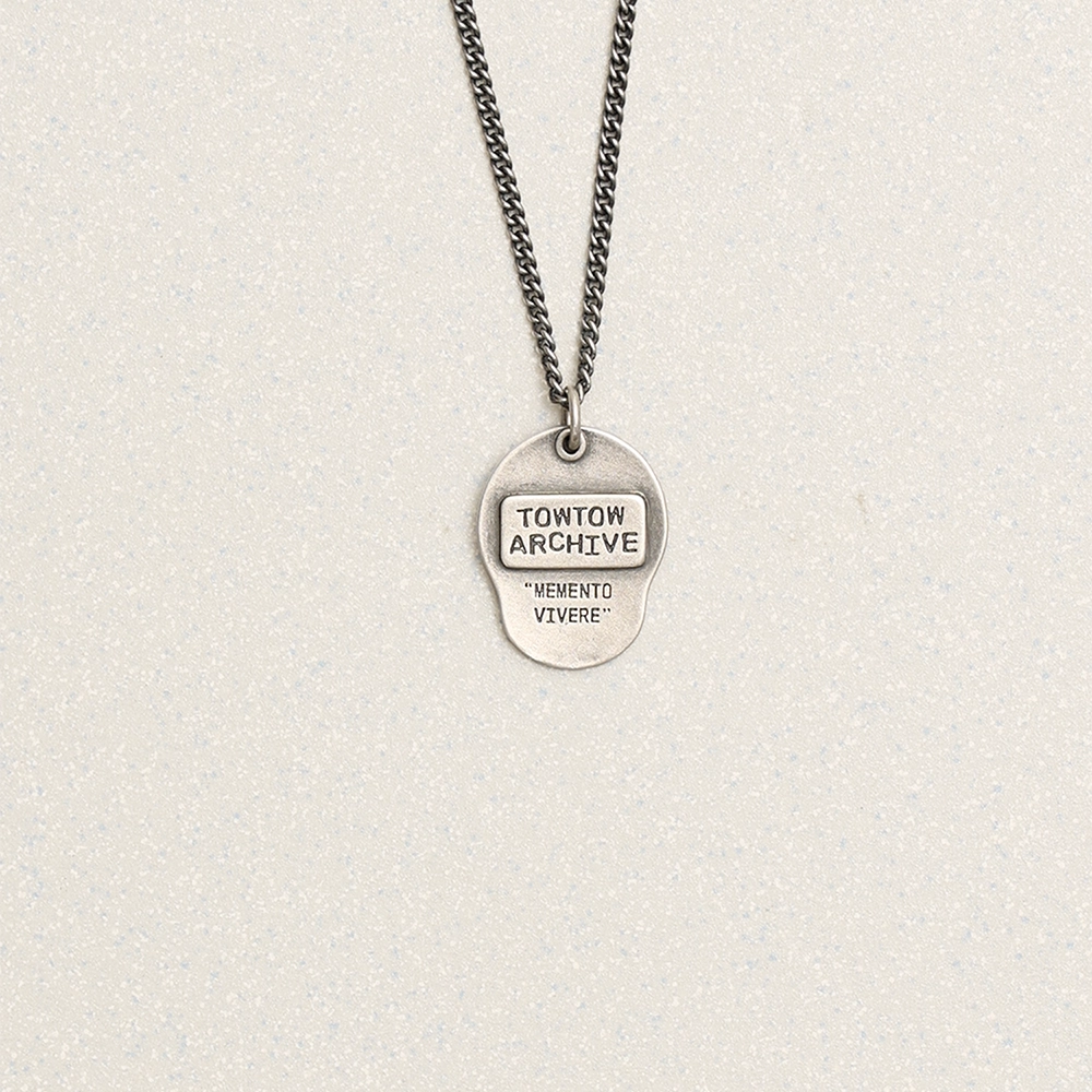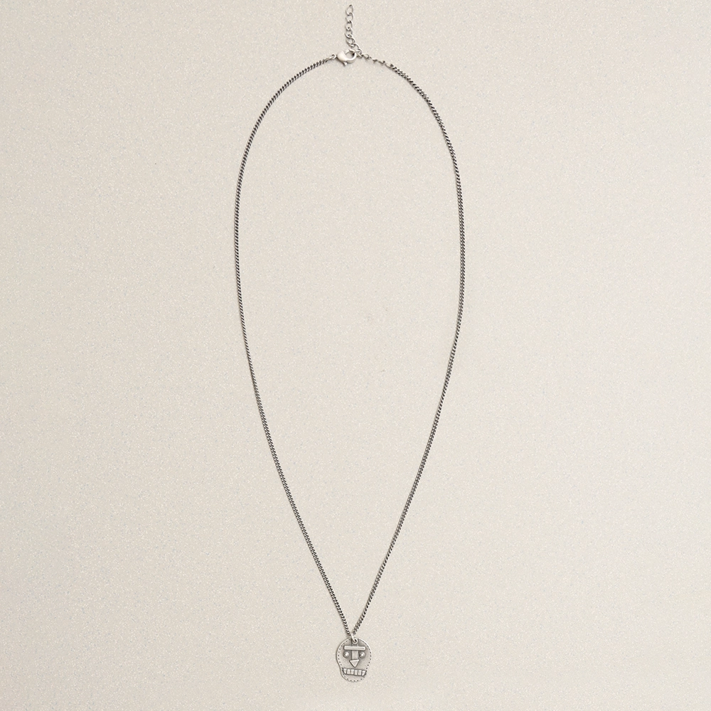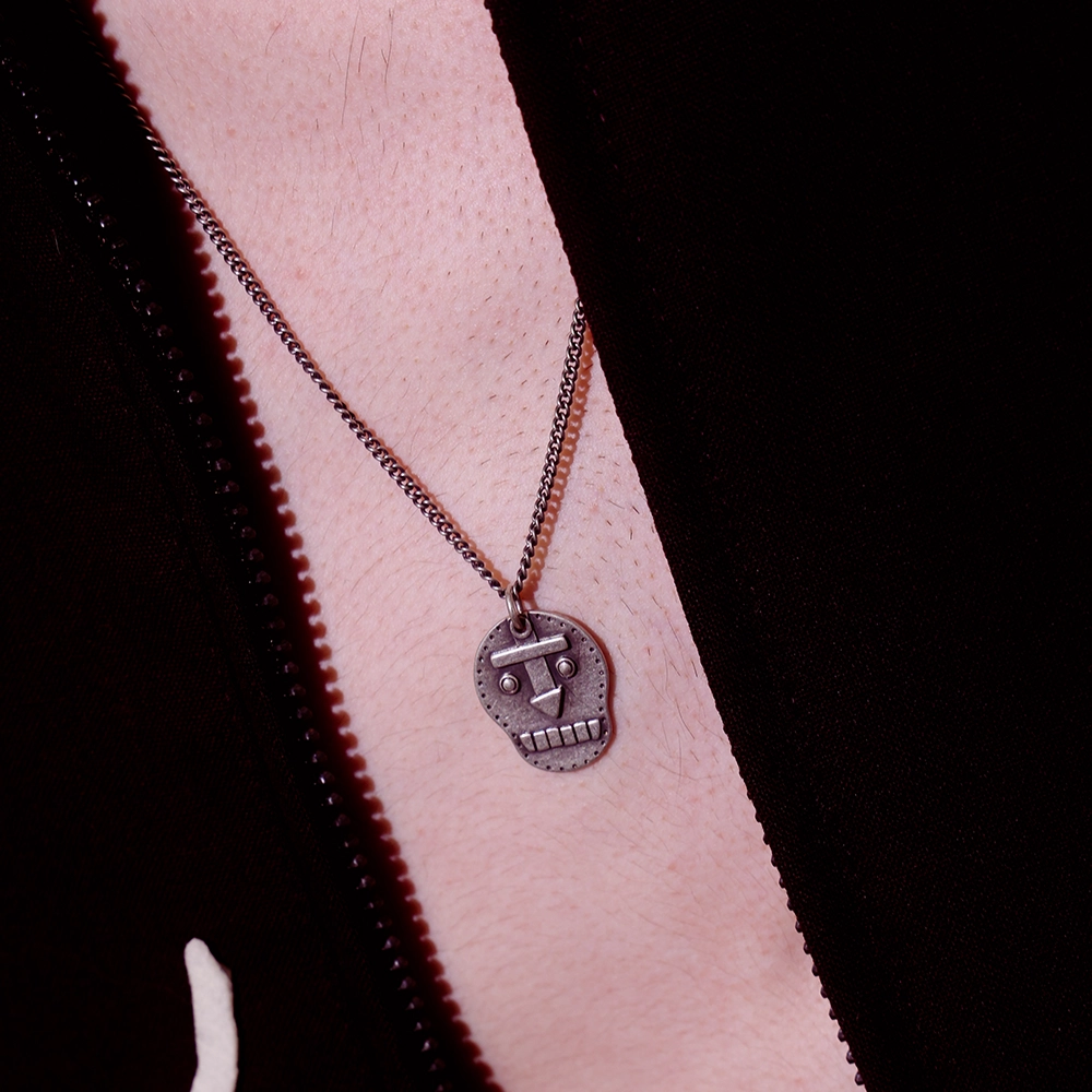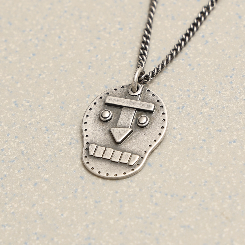 플랫한 형태로 단순화한 스컬 펜던트를 중심으로 구성한 목걸이입니다.
