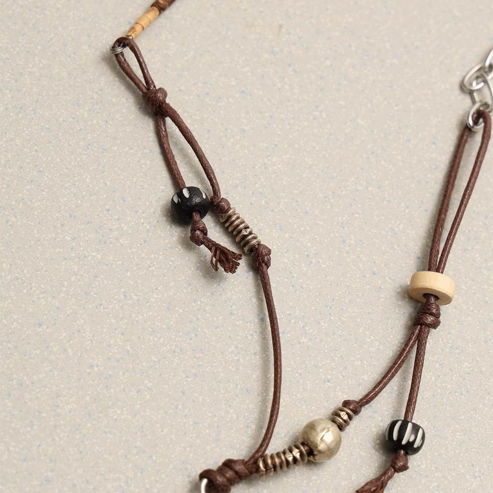 비즈와 체인, 가죽 스트링을 조합해 구성한 목걸이로, 토우토우 아카이브 오리지널 펜던트를 더한 디자인입니다.