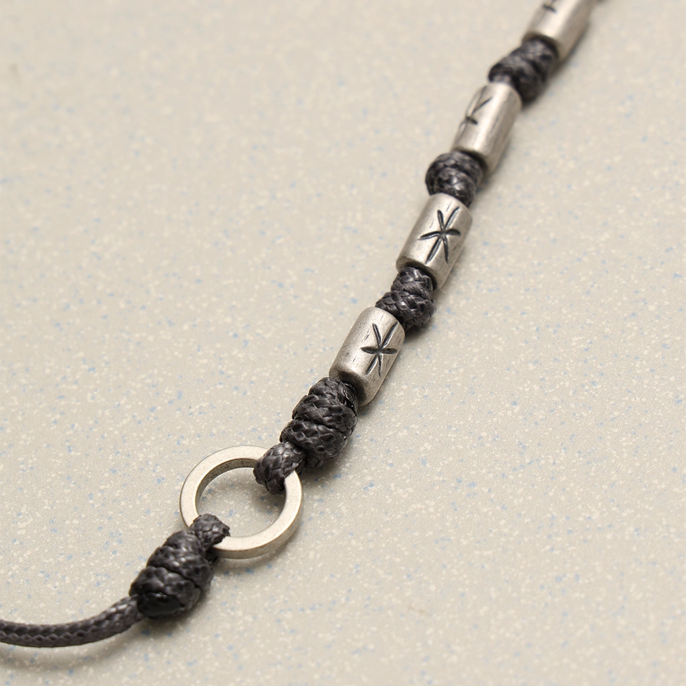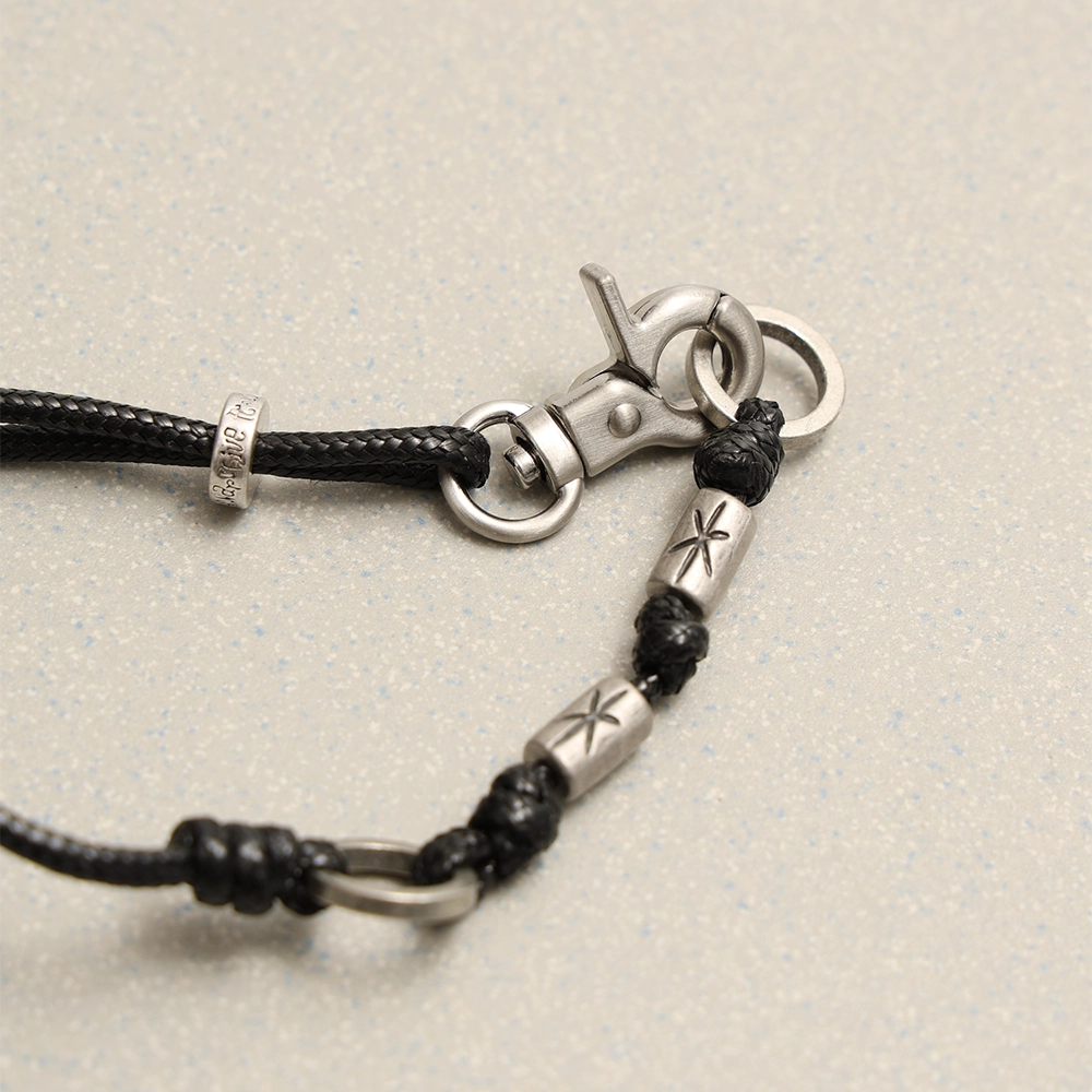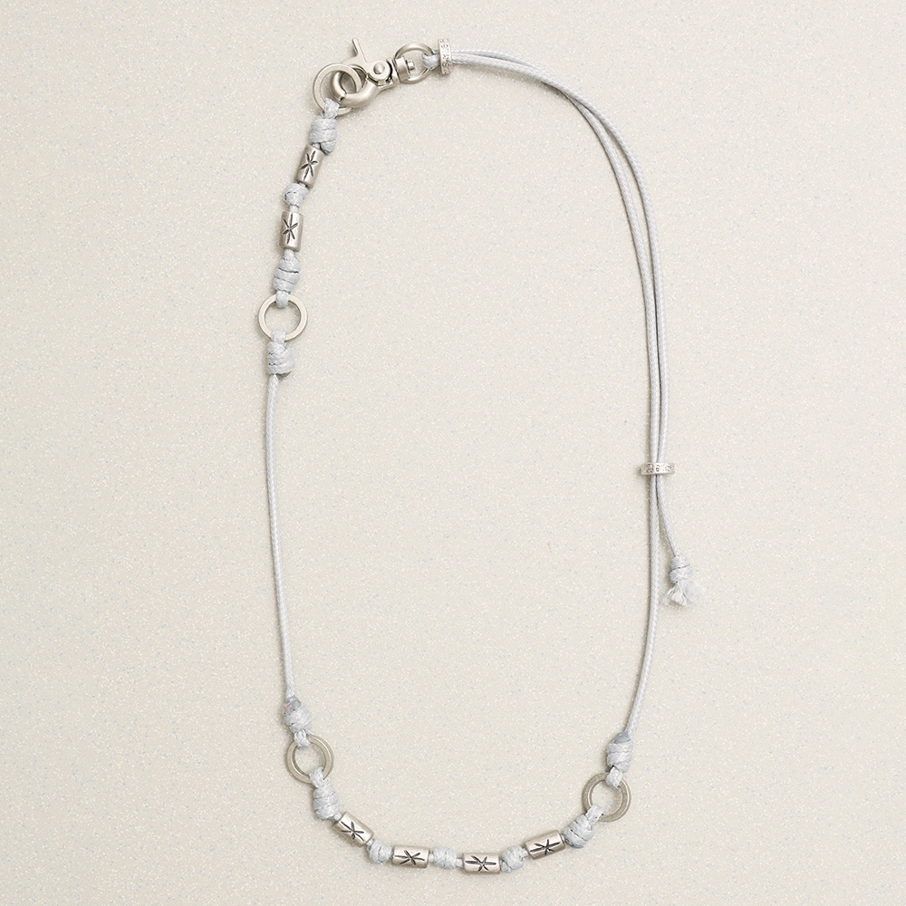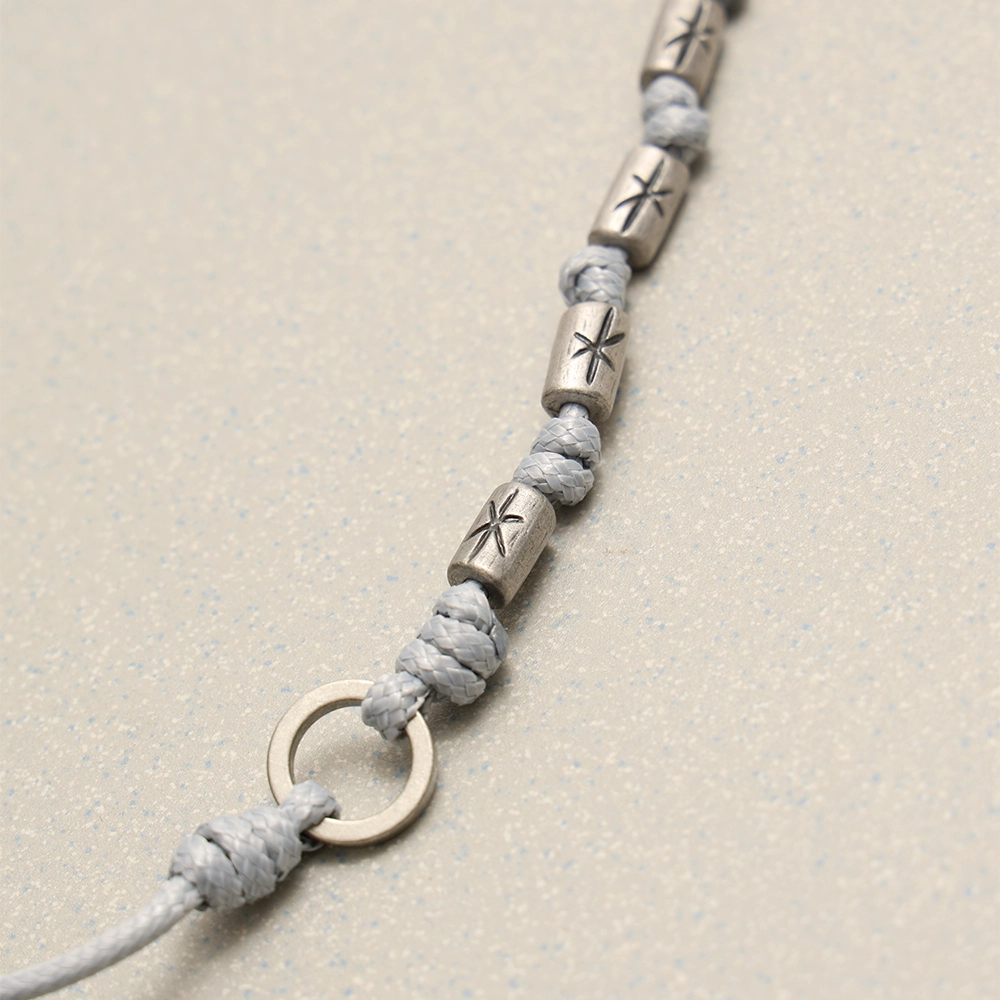 컬러 스트링과 빛의 형상을 조각한 메탈 비즈의 배열이 매력적인 아이템 입니다.