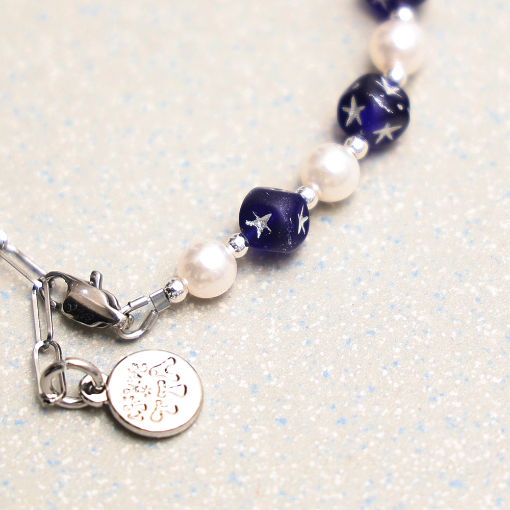 스타 큐브 펄 팔찌 네이비