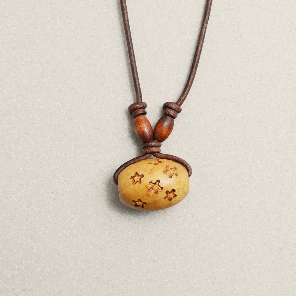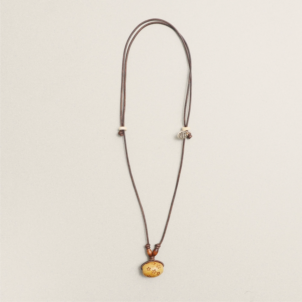 우드 비즈에 작은 별 형태의 각인을 더해 위트 있는 포인트를 한 스푼 담은 스타 에그 목걸이 입니다.